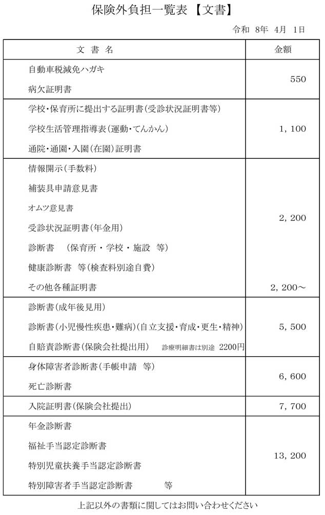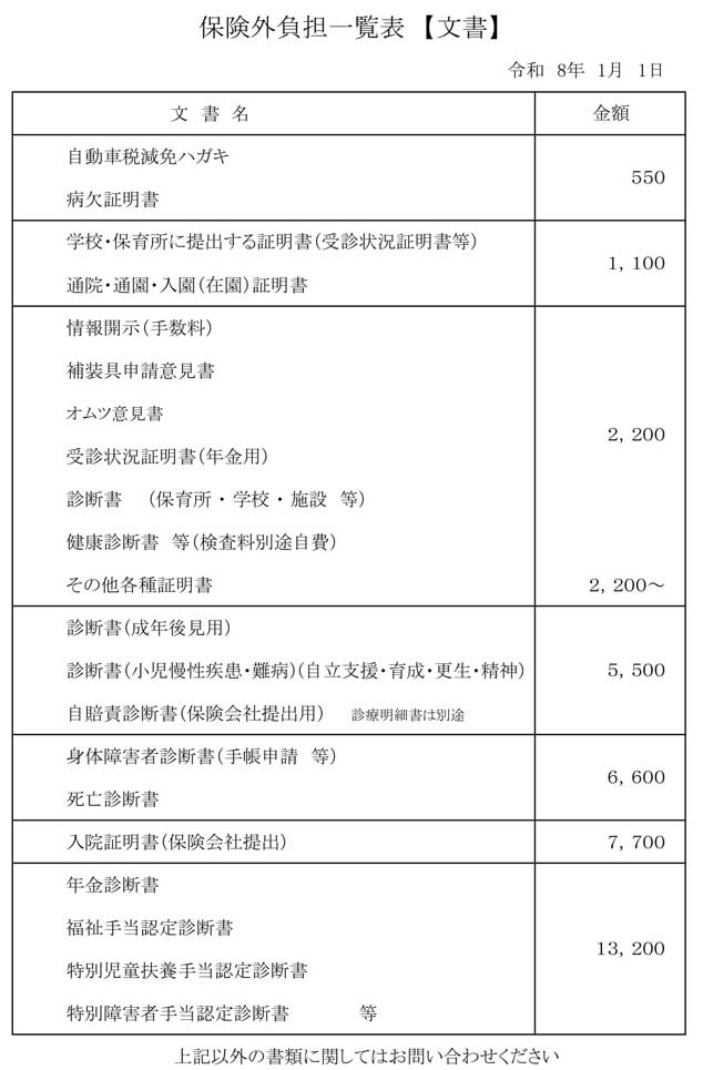 | 当院は療担規則に則り明細書については無償で交付いたします。 | |||