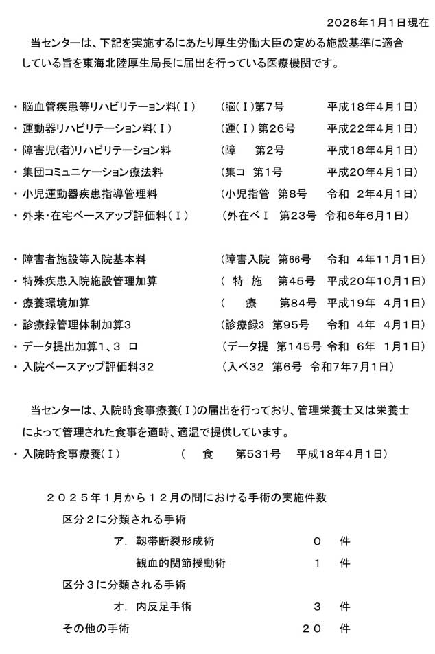 | ・施設基準に係る届出、手術件数 | |||